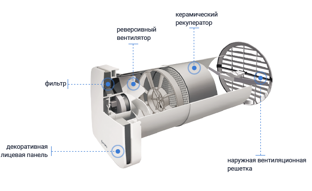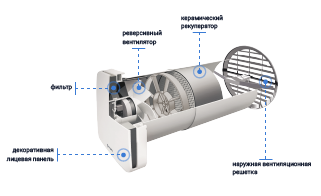 Воздух поступает в помещение через встроенный фильтр, очищающий его от механических примесей, а высокоэффективный рекуператор «выравнивает» температурный перепад между внутренней и внешней температурой. Проветриватели рекомендуется устанавливать в каждой комнате.